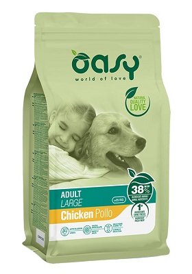 CARNE FRESCA La carne fresca offre il massimo quanto a digeribilità, assimilazione dei nutrienti e gusto. Le sue proteine mantengono un eccellente valore biologico, i grassi contengono meno radicali liberi e viene assicurata una migliore conservazione delle vitamine. ARTICOLAZIONI Calcio, Fosforo e Vitamina D3 sono fondamentali per favorire la salute di ossa e articolazioni. Nei cani di taglia grande è particolarmente importante proteggere le cartilagini articolari e la struttura ossea, maggiormente sollecitate dal peso. MASSA MUSCOLARE Le proteine di alta qualità contenute in Oasy hanno un alto valore biologico e sono fondamentali per favorire una massa muscolare forte e magra nei cani di taglia grande. DIGESTIONE CORRETTA La cicoria è una fonte naturale di FOS (Fruttoligosaccaridi) che insieme ai MOS (Mannanoligosaccaridi) favorisce una corretta digestione. L’estratto di yucca è indicato nel controllo dell’odore delle feci. La polpa di barbabietola è un’ottima fonte di fibre e supporta una regolare attività intestinale. CIBO SECCO COMPLETO PER CANI ADULTI DI TAGLIA GRANDE E GIGANTE Composizione: Pollo fresco (20%), mais, farina di pollame, grano, orzo, riso, grasso di pollame, polpa di barbabietola (3%), idrolizzato di fegato di pollame, glutine di mais, farina di pesce, lievito di birra, cicoria (0,5%), uova intere disidratate, minerali, cloruro di sodio, estratto di yucca (170 mg/kg), mannanoligosaccaridi (60 mg/kg), glucosamina, condroitina. Componenti analitici: Proteina grezza 24%, oli e grassi grezzi 14%, acidi grassi Omega-6 3,2%, acidi grassi Omega-3 0,5%, fibra grezza 3%, ceneri grezze 8,5%, calcio 1,6%, fosforo 1,2%, umidità 9%. Additivi: Additivi nutrizionali: Vitamina A 15.000 IU/kg, Vitamina D3 2.000 IU/kg, Vitamina E 150 mg/kg, Solfato ferroso monoidrato 75 mg/kg, Ioduro di potassio 3,5 mg/kg, Solfato rameico pentaidrato 10 mg/kg, Solfato manganoso monoidrato 7,5 mg/kg, Ossido di zinco 150 mg/kg, Selenito di sodio 0,2 mg/kg, Taurina 480 mg/kg, L-carnitina 40 mg/Kg. Additivi tecnologici: antiossidanti naturali. Senza aromatizzanti o coloranti artificiali aggiunti. RAZIONE GIORNALIERA CONSIGLIATA: GRAMMI/GIORNO Peso del cane Grammi al giorno 25-40 kg 381-473 40-50 kg 473-559 50-60 kg 559-641 60-70 kg 641-719 70-80 kg 719-795