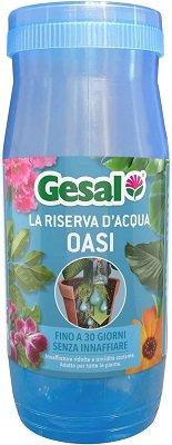 GESAL OASI RIS.ACQUA ML.300 Riserva d’acqua adatta per tutte le piante, Riduce la frequenza delle innaffiature e assicura un’umidità costante Acqua complessata costituita da acqua demineralizzata e cellulosa, La fibra viene progressivamente degradata dai microrganismi presenti nel terriccio che così liberano l’acqua Fino a 30 giorni di efficacia, Ottima per i periodi di assenza da casa, Utilizzabile tutto l’anno Modalità duso: 1) Annaffiare abbondantemente, 2) Aprire il barattolo e inserirlo nel vaso a una profondità di 2-3 cm, Consultare letichetta per decidere il dosaggio adeguato
