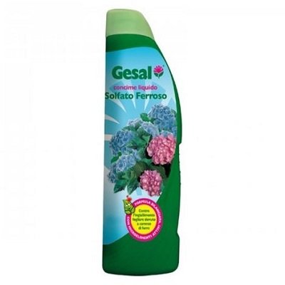 GESAL SOLFATO DI FERRO LIQUIDO LT 1 Formula a pronto effetto contro lingiallimento fogliare dovuto a carenze di ferro. Ristabilisce il corretto metabolismo della pianta garantendo il giusto fabbisogno di Ferro. Composizione: Soluzione di concime a base di ferro (solfato) Quando utilizzarlo: Questo prodotto è utilizzabile tutto lanno. Come e quanto utilizzarne: Riempire il tappo fino al limite superiore (sino alla tacca “12 ml”) e diluire il contenuto in 4 L di acqua per prevenire carenze di ferro , in 2 L di acqua in caso di gravi carenze di ferro e annaffiare. Agitare il prodotto prima delluso. Per un effetto decalcificante lasciare riposare la soluzione per una notte prima di annaffiare. Concimare una volta alla settimana a seconda delle esigenze della pianta.