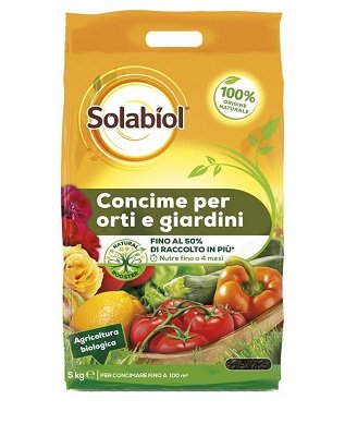 SOLABIOL CONCIME ORTI E GIARDINI KG.12 Concime biologico con tecnologia Natural Booster Concime biologico granulare 100% di origine naturale. La speciale tecnologia Natural Booster promuove un maggior sviluppo dellapparato radicale della pianta fino a farlo raddoppiare. Grazie ad un apparato radicale più sviluppato la pianta può arrivare a produrre fino al 50% di raccolto in più e fino al doppio delle fioriture. Una pianta con radici più forti sarà anche più resitente allattacco di insetti e parassiti. Fino al 50% di raccolto in più 100% origine naturale nutre 4 mesi autorizzato in agricoltura biologica ridotto fabbisogno di acqua. Modalità dimpiego Metodo di applicazione: Distribuire a spaglio e interrare Principio attivo NPK 3,6-6-10 + 2 MgO con tecnologia Natural Booster Precauzioni per luso Prodotto da usare con prudenza e da tenere fuori dalla portata dei bambini. Per evitare rischi per la salute umana e per l’ambiente, seguire le istruzioni per l’uso riportate sulla confezione. Informazioni registrative Prodotto da usare con prudenza e da tenere fuori dalla portata dei bambini. Per evitare rischi per la salute umana e per l’ambiente, seguire le istruzioni per l’uso riportate sulla confezione.