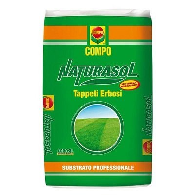 TERRICCIO Naturasol® Tappeti Erbosi è una miscela equilibrata di torba bionda fine, torba bruna, sostanza organica umificata e sabbia silicea. Ha una granulometria idonea per la preparazione dei letti di semina, per la rigenerazione di prati diradati e per il top-dressing di prati sportivi e ornamentali. Contiente Agrosil® LR, attivatore dello sviluppo radicale ed è arricchito con concimi a lento rilascio a base di Isodur® . Modalità di impiego Alla preparazione del terreno Stendere uno strato di 3-5 cm e incorporarlo al terreno Dopo la semina Stendere uno strato di 0,5 cm sopra i semi ed esercitare una leggera pressione (rullatura). Trasemina Dopo larieggiatura del terreno, riempire i buchi con il terriccio e seminare. Composizione Torba neutra di sfagno Ammendante compostato verde Sabbia silicea a pH neutro pH (H2O) 6,0-7,0