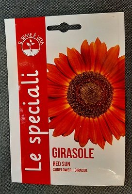 GIRASOLE RED SUN Varietà annuale. Pianta eretta che produce grandi fiori con petali di colore rosso scuro con centro di medie dimensioni. Ottima per aiuole in esposizione soleggiata e come fiore da recidere. Ragggiunge laltezza di circa 160 cm. Esposizione: Ben soleggiata SEMINA: Febbraio a Giugno I semi sono confezionati in bustine anti-umidità.
