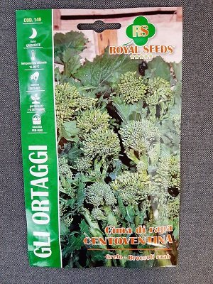 BUSTA ORTO CIMA DI RAPA CENTOVENTINA Varietà tardiva, molto produttiva, nota anche come broccoletto o cima di rapa marzatica. Si tratta di un tipo di rapa di cui si utilizzano le infiorescenze e la parte tenera del fusto con le foglie. Le piante vengono recise 5-10 cm da terra in modo che possa ricacciare altri numerosi getti ascellari dalla base dello stelo. La semina, diretta in pieno campo, si effettua da Settembre a tutto Ottobre in file distanti cm 30 e la raccolta inizia circa 120 giorni dalla semina.
