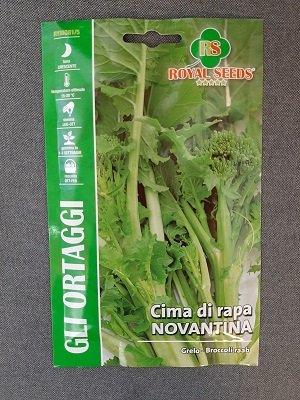 BUSTA ORTO CIMA DI RAPA NOVANTINA Pianta con ottime caratteristiche di adattabilità e di rusticità. Si adatta bene alla coltivazione sul territorio nazionale. Se ne consumano i getti dal sapore delicatissimo, bolliti o ripassati in padella. Si semina a file distanti fra di loro cm 40 e cm 5/6 sulle file.