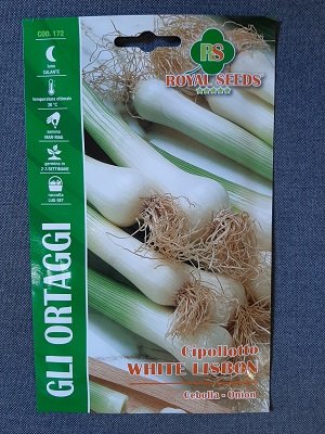 BUSTA ORTO CIPOLLOTTO WHITE LISBON MAXI Varietà per produzione di cipollotti, largamente conosciuta ed apprezzata. Bulbo di forma leggermente ellittica, di colore bianco, con diametro medio di 2-4 cm e foglia di colore verde medio. Si semina preferibilmente da marzo a maggio alla distanza di 15 cm sulla fila e 25 cm tra le file, per produzioni che vanno da fine giugno e settembre.
