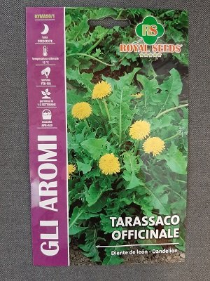 BUSTA TARASSACO OFFICINALE DENTE DI LEONE Perenne. Le foglie, dal sapore leggermente amarognolo, si utilizzano crude in insalata oppure cotte come gli spinaci.