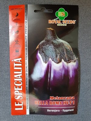 MELANZANA BELLA ROMA varietà medio-precoce. Pianta di medio vigore e con buona copertura fogliare. Produce frutti di forma globosa ad alto peso specifico, con polpa bianca, consistente e con pochi semi. Pianta di buona produzione.