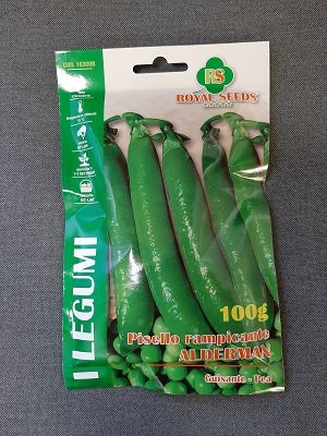 PISELLO RAMPICANTE ALDERMAN GR.100 Varietà di forte vigore che necessità di sostegno. Produce baccelli lunghi 12-13 cm con 9-10 grani. Si semina da ottobre ad aprile