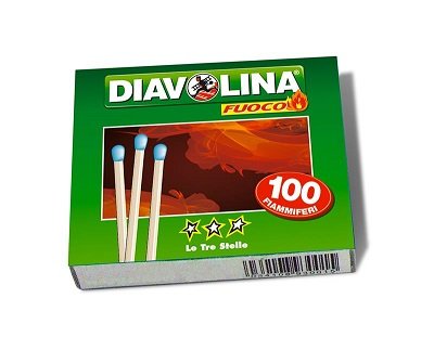 Fiammifero 2,25x47 mm testa azzurra. Box 63x51x13 mm. Scatola da 100 pz.