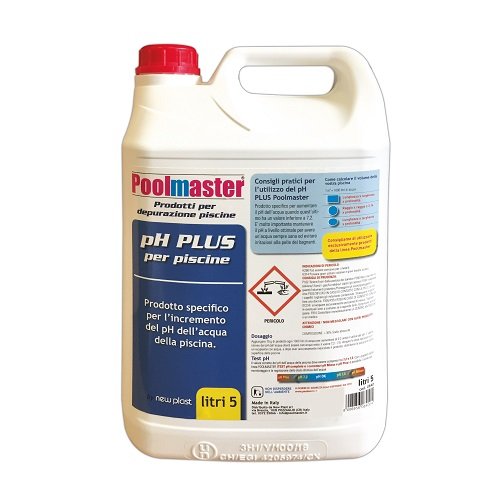 Il pH rappresenta l’acidità e l’alcalinità dell’acqua. La scala del pH può variare da 0 a 14, dove “0” rappresenta la massima acidità, “7” valore neutro e “14” la massima alcalinità. Il valore corretto del pH è compreso tra 7.2 e 7.6 e la sua costante regolazione è la prima prevenzione per un’acqua sana. Composizione pH - prodotto a base di idrogeno solfato di sodio Composizione pH + prodotto a base di sodio idrossido Uso: immettere direttamente negli skimmer o in piscina, precedentemente disciolto in acqua Dosaggio: 15 g di prodotto ogni 1000 lt di acqua, modifica il valore del pH di 0,2 unità