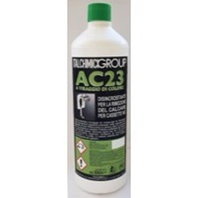 AC 23 DISINCROSTANTE PER CASSETTE Disincrostante a viraggio di colore per la rimozione delle formazioni calcaree presenti nelle cassette WC. Modalità d’uso : Rimuovere la placca (per le cassette WC ad incasso) e versare l’intero contenuto all’interno a vaschetta piena lasciare agire per 20 / 30 minuti, poi scaricare lasciare riempire la vaschetta e scaricare per 3 / 4 volte. Il colore cambia per l’effetto neutralizzante del calcare.