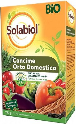 SOLABIOL CONCIME ORTO DOMESTICO KG 1,5 La speciale tecnologia Natural Booster promuove un maggior sviluppo dellapparato radicale della pianta fino a farlo raddoppiare. Grazie ad un apparato radicale più sviluppato la pianta può arrivare a produrre fino al 50% di raccolto in più. Una pianta con radici più forti sarà anche più resitente allattacco di insetti e parassiti. Fino al 50% di raccolto in più 100% origine naturale Nutre 4 mesi Autorizzato in agricoltura biologica Modalità dimpiego Metodo di applicazione: Distribuire a spaglio e interrare In vaso: mescolare il prodotto alla base della pianta o miscelare al terriccio In piena terra: distribuire alla base delle piante. Superficie trattata fino a 15 m² Principio attivo NPK 3,6-6-10 + 2 MgO con tecnologia Natural Booster Precauzioni per luso Prodotto da usare con prudenza e da tenere fuori dalla portata dei bambini. Per evitare rischi per la salute umana e per l’ambiente, seguire le istruzioni per l’uso riportate sulla confezione.