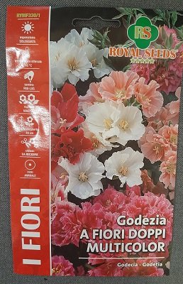 BUSTA GODEZIA DOPPIA MIX MAXI RS Pianta di buona adattabilità alle diverse zone, tipica per il fiore reciso in estate. Si adatta a tutti i terreni. Predilige posizioni in pieno sole o mezz’ombra. E’ necessario irrigare con frequenza. Dopo il taglio dei primi fiori, la pianta va concimata ed irrigata abbondantemente. Si semina in cassetta protetta con vetro da febbraio (sud) o in pieno campo da aprile coprendo i semi con sabbia fine. Si trapianta con abbondante pane di terra.
