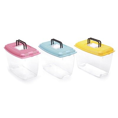 ACQUARIO ARIEL LARGE Ariel è una vaschetta in plastica ideale per accogliere pesci rossi ma anche per ospitare per un breve periodo i pesci quando il vostro acquario necessita di pulizia o manutenzione. Vaschetta in plastica trasparente con coperchio rimovibile per una pulizia veloce e con maniglia a scomparsa per trasportarla comodamente. Inoltre il coperchio dispone di un’apertura centrale per inserire il cibo e di fessure laterali per un ottimale ricircolo dell’aria. Ariel è disponibile in tre colori, rosa, verde acqua e giallo e in tre dimensioni e capacità: Small 2 litri, Medium 4 litri e Large 10 litri.