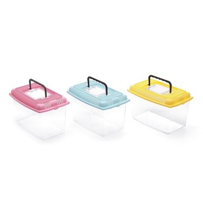 ACQUARIO ARIEL MEDIUM Ariel è una vaschetta in plastica ideale per accogliere pesci rossi ma anche per ospitare per un breve periodo i pesci quando il vostro acquario necessita di pulizia o manutenzione. Vaschetta in plastica trasparente con coperchio rimovibile per una pulizia veloce e con maniglia a scomparsa per trasportarla comodamente. Inoltre il coperchio dispone di un’apertura centrale per inserire il cibo e di fessure laterali per un ottimale ricircolo dell’aria. Ariel è disponibile in tre colori, rosa, verde acqua e giallo e in tre dimensioni e capacità: Small 2 litri, Medium 4 litri e Large 10 litri.