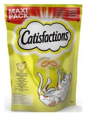 CATISFACTIONS FORMAGGIO 180 G Lo snack per gatti e gattini Catisfactions nel formato Maxi Pack è un prelibato spuntino con una consistenza unica. Un alimento complementare gustosissimo con un ripieno racchiuso in un croccante confetto. Una ricompensa perfetta o uno spuntino ideale da consumare fuori dai pasti. Il tuo gatto non potrà più fare a meno di Catisfactions al Formaggio. Formato da 180 grammi. Cereali, Carni e derivati, Oli e grassi, Latte e derivati del latte (di cui 4% formaggio) Sostanze minerali, Sottoprodotti di origine vegetale. Integrazioni per kg: Additivi: - Vitamina A: 5241 U - Vitamina B1: 14.5 mg - Vitamina B2: 7.3 mg - Vitamina B3: 5.8 mg - Vitamina D3: 578 U.I. - Vitamina E: 87 mg - Solfato di rame pentaidrato: 20.5 mg - Solfato di manganese monoidrato: 43.3 mg - Ioduro di potassio: 1.7 mg - Solfato di zinco monoidrato: 193 mg Proteine grezze 20% Grassi greggi 23% Ceneri gregge 11% Fibra grezza 0,3% Valore energetico 417 kcal per 100g