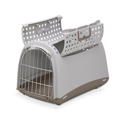 TRASPORTINO LINUS CABRIO GRIGIO Viaggiare con il tuo amico a 4 zampe non è mai stato così comodo e bello. Ma anche per viaggi brevi o per portarlo dal veterinario, il trasportino in plastica Linus Cabrio per gatti e cani di piccola taglia con doppia apertura è un accessorio indispensabile. Infatti l’apertura sul tetto ti permette di controllare facilmente il tuo animale, di coccolarlo, di dargli da mangiare o da bere. La portina frontale in metallo e i fori garantiscono un’ottima areazione e grazie alla doppia apertura il trasportino Linus Cabrio e veramente facile e comodo da pulire. Scoprite quale colore è più adatto a voi e al vostro gatto o cane di piccola taglia. Assolutamente rosa sé è una femminuccia, antracite, azurro o tortora per il maschietto della famiglia e un vivace cuscino Puf Linus da abbinare, renderà il vostro trasportino Linus Cabrio un luogo accogliente e assolutamente sicuro per il vostro amico di zampa.