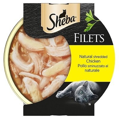 SHEBA FILETS POLLO SMINUZZATO AL NATURALE GR 60 Deliziosi filetti accompagnati da una salsa straordinaria che offrono il sapore e il gusto di cui ogni gatto è alla ricerca. Pochi ingredienti, semplici e di qualità, per garantire un’elevata esperienza culinaria al proprio gatto, nel rispetto dell’ambiente. Date fino a 1 vaschetta al giorno e ridurre il pasto principale di ½ busta di SHEBA® da 85 g. Lasciare sempre a disposizione dellacqua fresca. Composizione: filetti di pollo (37% ), amido di tapioca. Componenti analitici (% ): proteina grezza: 13.0 oli e grassi grezzi: 0.80 ceneri grezze: 0.55 fibra grezza: 0.10 umidità: 84.0