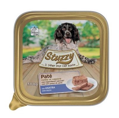 STUZZY DOG PATE ANATRA GR.300 Cibo umido per cani adulti in vaschetta da 300g di Stuzzy, un goloso patè con veri pezzi di carne per lalimentazione completa del tuo amico a quattro zampe. Le diverse ricette proposte sono prive di coloranti e conservanti aggiunti per garantire al tuo amico a quattro zampe unalimentazione ottimale. Prodotto con alta percentuale di carni e cotto al vapore. Il tuo cane non vedrà lora di assaggiarlo! Anatra: carni e derivati 65% (anatra 4%) sottoprodotti di origine vegetale sostanze minerali, proteina 10%, grassi grezzi 4,5%, fibre grezze 0,3%, ceneri grezze 1,8%. Umidità 81%