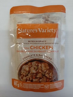 NV POLLO BOCCONCINI GR 85 NATURES VARIETY SNACKS IN SALSA CON POLLO è un alimento umido per gatti in salsa con pollo. Cotti a vapore a temperatura ottimale nel loro stesso succo per preservare al meglio i nutrienti. Composizione : Pollame 12%, maiale* 5%, pollo* 16%, amido di mais, proteine di maiale e manzo, sostanze minerali, carota disidratata* (0,5%, pari al 3,4% di carota fresca), piselli secchi* (0,5%, pari all1,8% di piselli freschi), zuccheri, *Ingredienti naturali Additivi nutrizionali: vitamina D3 100 UI, vitamina E 15 mg, taurina 450 mg, iodato di calcio anidro 0,8 mg (I: 0,5 mg), solfato di zinco monoidrato 39 mg (Zn: 14 mg) Componenti analitici: 8,5% Proteina grezza 4,5% Grassi grezzi 0,5% Fibra grezza 2,0% Ceneri grezze 82% Umidità
