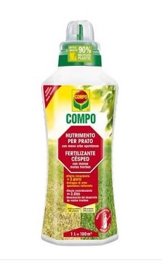 COMPO LIQUIDO MENO INFESTANTI LT 1 COMPO Concime Liquido per un prato pulito con meno erbe spontanee Nutre e rinvigorisce il prato Garantisce l’effetto rinverdente in soli 3 giorni Crea un ambiente sfavorevole alla crescita di infestanti a foglia larga indesiderate e muschio Dosaggio facile senza sprechi: tappo graduato con salvagoccia Bottiglia riciclata e riciclabile COMPO Concime Liquido per un prato pulito con meno erbe spontanee Descrizione del prodotto Concime liquido per il tappeto erboso nella caratteristica bottiglia COMPO in plastica riciclata al 90%. Appositamente studiato per ottenere un ambiente sfavorevole alla crescita di erbe spontanee indesiderate e muschio grazie all’alto contenuto di ferro chelato , nutre e sostiene la crescita del prato grazie al contenuto di azoto a pronto effetto, dona un rapido effetto rinverdente per prati ingialliti grazie alla presenza di ferro e microelementi. Impiego Raccomandazioni per luso Modalità d‘uso: 1. Agitare il flacone prima dell’uso 2. Riempire la pompa spray con l’acqua di diluzione, aggiungere il concime e agitare la soluzione 3. Nebulizzare sul prato