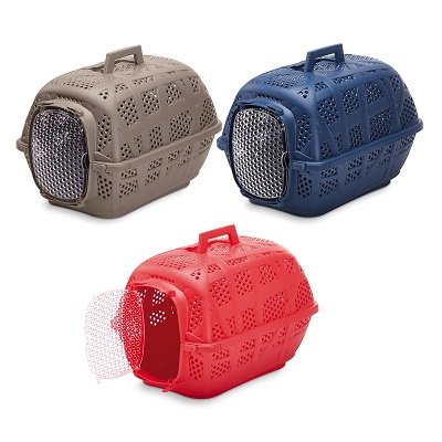 TRASPORTINO CARRY SPORT Carry Sport è il trasportino per cani di piccola taglia e gatti, dal design originale e accattivante. Il box è costruito in plastica atossica con fori per una perfetta areazione e una porta in plastica trasparente con comodi ganci di chiusura sui quattro angoli per avere la possibilità di aprirla o rimuoverla. Il robusto trasportino per cani e gatti Carry Sport è dotato di una maniglia a scomparsa per un trasporto sicuro. È disponibile in tre colori alla moda e per renderlo più comodo al vostro amico a 4 zampe, abbinate un cuscino Puf Carry Sport disponibile in fantasie assortite.