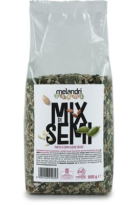 MIX DI SEMI GR 800 INGREDIENTI Semi in proporzione variabile (zucca decorticati, girasole decorticati, lino, sesamo decorticati). Può contenere grano farro, orzo, avena, soia, senape, lupini INDICAZIONI D’USO Ideali per insalate, pane e prodotti da forno, cereali per la prima colazione, barrette croccanti CONSERVAZIONE Conservare in luogo fresco e asciutto, lontano da fonti di luce e calore.