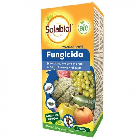 FUNGICIDA A BASE DI ZOLFO WANAX PFNPE 100 ML - SOLABIOL Fungicida a base di Zolfo in un’innovativa formulazione liquida caratterizzata da una pronta e facile dispersibilità in acqua. Grazie all’elevata qualità della materia prima, al grado fine di macinazione ed alla formulazione flowable, Tiolene consente un’uniforme copertura della vegetazione trattata e un’ottima efficacia nei confronti dell’oidio. Ampio spettro dazione Contiene misurino dosatore Autorizzato in agricoltura biologica