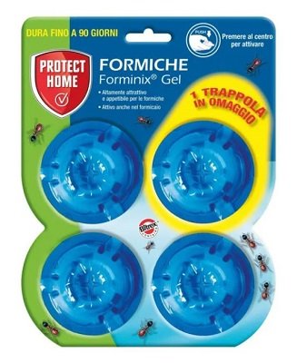 FORMINIX GEL FORMICHE PZ 4 Esca attrattiva in gel con chiusura salva freschezza Insetticida in gel liquido confezionato in trappolina (Box) in PE blu trasparente. Forminix® gel formiche è altamente attrattivo verso tutte le principali specie di formiche che infestano gli ambienti domestici. Il formulato in gel liquido mantiene a lungo la sua azione attrattiva e una volta attivato viene trasportato nel formicaio che sarà eliminato nel giro di qualche settimana. Per attivarlo è sufficiente premere al centro della trappolina: non occorre creare le aperture per il passaggio delle formiche. Un trattamento dura fino a 90 giorni. Altamente attrattivo ed appetibile per le formiche Attivo anche nel formicaio Efficace contro le principali specie di formiche Modalità dimpiego Metodo di applicazione: Premere al centro per attivare la trappolina. Posizionare, orizzontalmente, la trappolina nelle vicinanze dei formicai, vicino ai percorsi di passaggio delle formiche e nelle zone esplorate dalle operaie alla ricerca di cibo. Premere al centro della trappolina per attivarlo. Non posizionare le trappoline in luoghi troppo umidi e su superfici calde o riscaldate. Le trappoline non devono essere messe su superfici appena trattate con altri insetticidi (spray, polvere, ecc…). Posizionare la trappolina ovunque venga rilevata la presenza di formiche: in ambienti interni come cucina, soggiorno, camera da letto, ma anche ristoranti, uffici, sale d’attesa, cantine, e in aree esterne come balconi, terrazzi, portici, marciapiedi e garage. Dosaggio Impiegare una trappolina ogni 10 m2. Principio attivo Principio attivo: Imidacloprid 0,03% Precauzioni per luso Prodotto da usare con prudenza e da tenere fuori dalla portata dei bambini. Per evitare rischi per la salute umana e per l’ambiente, seguire le istruzioni per l’uso riportate sulla confezione.