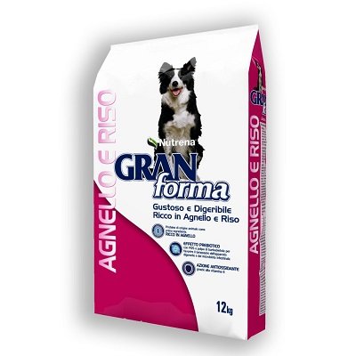 GRANFORMA DOG AGNELLO E RISO KG 12 Nutrena ha ideato la gustosa ricetta GranForma Agnello & Riso, un alimento completo e delicato, ricco in Agnello e Riso, per il giusto apporto di proteine, grassi e carboidrati che favoriscono la vitalità del vostro cane. Con azione antiossidante grazie alla vitamina E, con FOS e polpa di barbabietola per favorire il benessere dell’apparato digerente e del microbiota intestinale. La presenza di yucca schidigera favorisce l’assorbimento delle proteine ed aiuta ad inibire l’odore delle feci. Questa formula bilanciata favorirà la corretta alimentazione del vostro cane ed il suo benessere. Composizione: Proteine animali trasformate 23% (agnello 14%, suino, pollo), mais, riso 20%, frumento, grasso suino, polpa di barbabietola essiccata 3%, proteine idrolizzate di pollo, lieviti essiccati, fosfato bicalcico, cloruro di sodio, cloruro di potassio, fruttoligosaccaridi (FOS) 0,1%, yucca schidigera 0,05%. Componenti analitici % s.t.q.: Proteina grezza 24%, grassi grezzi 11%, fibra grezza 3,0%, ceneri grezze 7,0%, calcio 1,1%, fosforo 0,85%, magnesio 0,14%. ENERGIA METABOLIZZABILE: kcal/kg 3.560