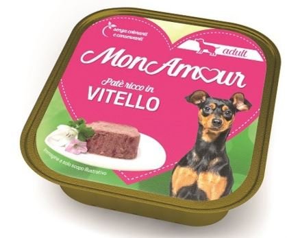 DOG 150 GR VITELLO MONAMOUR Monamoour Adult Paté per cani con vitello da 150gr è un alimento completo per cani adulti. Ricetta senza glutine e senza cereali. Mangime completo per animali da compagnia. Composizione Carni e derivati (contenuto di carni 61%, di cui vitello 14%), pesci e sottoprodotti dei pesci, sostanze minerali. Additivi Vitamina D3 140 UI, solfato di zinco monoidrato 33 mg (zinco 12 mg), ossido manganoso 1,6 mg (manganese 1 mg), solfato rameico pentaidrato 2 mg (rame 0,5 mg), iodato di calcio anidro 0,5 mg (iodio 0,3 mg) (valori per kg. di prodotto). Componenti analitici Umidità 82,0%, proteina grezza 9,5%, grassi grezzi 5,5%, ceneri grezze 2,2%, fibre grezze 0,3%. Istruzioni per un uso corretto Razione giornaliera consigliata: 40/50 grammi di prodotto per kg. di peso corporeo dell’animale. la quantità può essere modificata a seconda della razza, dell’età dell’animale, o dell’attività fisica. Servire a temperatura ambiente. Non somministrare all’animale il prodotto troppo freddo. Lasciare sempre a disposizione dell’animale acqua fresca e pulita. Dopo l’apertura conservare in frigorifero.