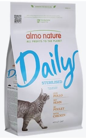 COMPOSIZIONE Cereali*, carni e derivati 36% (pollo disidratato 28%), oli e grassi, sostanze minerali. *Ingredienti naturali. COMPONENTI ANALITICI Proteina Grezza33 % Fibra Grezze3,8 % Grassi Grezzi11 % Ceneri Grezze8,9 % Umidità9 % Calcio1,8 % Fosforo1,2 % Magnesio0,1 % Omega 30,2% Omega 62,8% Energia3553 kcal/kg Additivi - additivi nutrizionali: vitamina A (3a672a) 15000 UI/kg, vitamina D3 (3a671) 1500 UI/kg, vitamina E (3a700i) 100 mg/kg, vitamina B1 (3a821) 6 mg/kg, vitamina B2 4,2 mg/kg, vitamina B6 (3a831) 3 mg/kg, vitamina B12 0,05 mg/kg, vitamina K3 (3a711) 1 mg/kg, acido folico (3a316) 2 mg/kg, calcio D-pantotenato (3a841) 12 mg/kg, biotina (3a880) 0,15 mg/kg, niacina (3a314) 50 mg/kg, colina cloruro (3a890) 2331 mg/kg, iodio 1,51 mg/kg (3b203 2,32 mg/kg ), ferro 30 mg/kg (solfato di ferro (II) monoidrato (3b103) 91,22 mg/kg), rame 8 mg/kg (solfato di rame(II) pentaidrato (3b405) 31,5 mg/kg), manganese 15 mg/kg (solfato manganoso, monoidrato (3b503) 46,25 mg/kg), zinco 49,87 mg/kg (solfato di zinco, monoidrato (3b605) 136,64 mg/kg), selenio 0,1 mg /kg (3b810 45,5 mg/kg), taurina 540 mg/kg. Additivi tecnologici: antiossidanti.