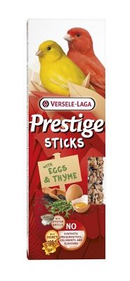 STICK CANARINI CON UOVA E TIMO 60 g Il cibo Versele Laga Prestige Bastoncini per Canarini con Uova & Timo è un delizioso premio per canarini. È composto da 2 stick di semi cotti, con uova e timo. Fornisce tutti i nutrienti necessari per la buona salute del vostro animale. Grazie alla clip di fissaggio, potete appendere il premio nella gabbia del vostro uccello. Consigli alimentari : Da somministrare in aggiunta allalimento principale. Caratteristiche Bastoncini per Canarini con Uova & Timo - Premi per canarini - Con uova e timo - Da somministrare in aggiunta allalimento principale in libera scelta - Arricchiti di gusci di ostriche - Confezionamento : 2 stick Ingredienti semi (semi di Niger 3%), sottoprodotti di origine vegetale, sostanze minerali (gusci di ostriche 7%), zuccheri (miele 2,5%), cereali, uova e derivati delluovo (uovo disidratato 2,2%, equivalente a 7,6% di uovo), timo 0,7%, oli e grassi, curcuma.