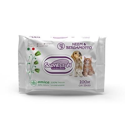XXL NEEM E BERGAMOTTO PZ.100 SALVIETTIN Salviett’in sono salviette umidificate formato 30×15 100 Pezzi. 100% tessuto biodegradabile. No alcol, no parabeni, ipoallergenico.