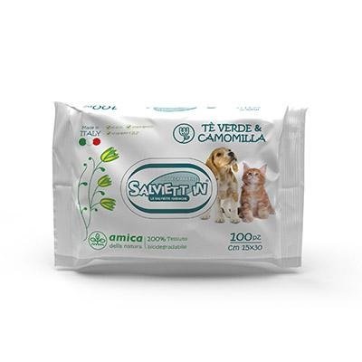 XXL THE VERDE E CAMOMILLA PZ.100 SALVIETTIN Salviett’in sono salviette umidificate formato 30×15 100 Pezzi. 100% tessuto biodegradabile. No alcol, no parabeni, ipoallergenico.