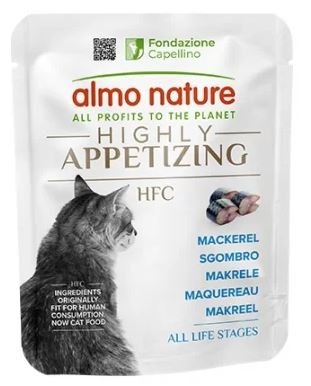 Descrizione HFC Highly Appetizing è lalimento quotidiano perfetto per tutti i gatti speciali e che non si accontentano del solito. Lappetibilità superiore, 100% naturale, deriva dallalta percentuale di sgombro cotto direttamente nella confezione con speciale procedimento che preserva gusto e nutrienti. Esclusivamente ingredienti in origine idonei al consumo umano, scelti da Almo Nature, ora alimento per gatti. La bustina poliaccoppiata di plastica ed alluminio, scelta per la corretta conservazione del prodotto, se smaltita correttamente può essere riutilizzata per produrre energia. HFC Highly Appetizing – disponibile in bustine da 50 g. Almo Nature è il brand attivista 100% proprietà della Fondazione Capellino. Composizione analitica (%) Proteina Grezza 20 Fibre Grezze 0,1 Grassi Grezzi 1,6 Ceneri Grezze 1,3 Umidità 75 Valore energetico 890 kcal/kg Composizione Sgombro 90%, brodo di sgombro 8,5%, riso 1,5% Razione giornaliera indicativa Gatto adulto 4 kg: 100 g alimento umido + 37 g alimento secco Caratteristiche Prodotto Scheda dati Gusto: Sgombro Peso: 50 gr