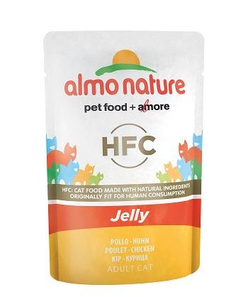 ALMO NATURE HFC JELLY CATS 55 GR POLLO HFC: una linea di ricette in cui la chiara identificazione dell’origine degli ingredienti garantisce al tuo gatto il miglior apporto naturale di proteine animali per un corretto equilibrio alimentare e benessere psicofisico. Con ingredienti HFC, cioè in origine idonei al consumo umano e ora alimento per gatti, grazie alla loro gelatina vegetale costituiscono anche un aiuto per la rimozione dei boli di pelo. Cucinate semplicemente in brodo, senza additivi chimici o coloranti, le ricette HFC Jelly sono un incentivo goloso per il pasto del tuo gatto! 100% HFC Carne o pesce in origine idonei al consumo umano e ora utilizzati in questi alimenti per cani o gatti. Monoproteina Ununica fonte di proteine animali. Ideale in caso di difficoltà alimentari. Gluten Free Ricette no-gluten. Proteine di alta qualità Alimenti con proteine di alta qualità, che favoriscono le principali funzioni corporee e rispettano la natura carnivora del tuo cane o gatto. Composizione Brodo di pollo, pollo 45%, riso 1%.