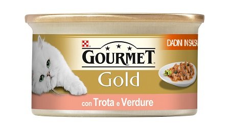 Composizione: Carni e derivati,Cereali, pesci e sottoprodotti dei pesci (trota 4%), ortaggi (4%), sostanze minerali, zuccheri. Additivi: Additivi nutrizionali: UI/kg: Vit A: 1290 Vit D3: 200 mg/kg: Fe(E1):9 I(E2):0,2 Cu(E4):0,8 Mn(E5):1,7 Zn(E6):9. Componenti analitici: Umidità 81,5% Proteina 7% Oli e grassi grezzi 4% Ceneri grezze 2% Fibra grezza 0,1%