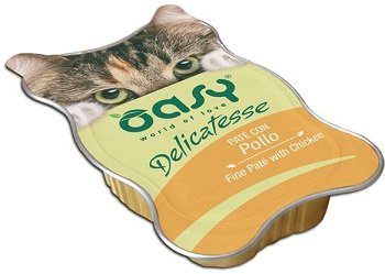 CON POLLO ALIMENTO COMPLETO PER GATTI COMPOSIZIONE: Carne e derivati di origine animale (>60% di cui Pollo 4%), oli e grassi, minerali, derivati di origine vegetale. COMPONENTI ANALITICI: Proteina grezza 10,5%, Oli e grassi grezzi 6,8%, Ceneri grezze 1,8%, Fibra grezza 0,5%, Umidità 79,5%. ADDITIVI PER KG: ADDITIVI NUTRIZIONALI: Vitamina D3 200 UI, Vitamina E 30 mg, Solfato di Zinco monoidrato 32 mg, Solfato Manganoso monoidrato 4,3 mg, Iodato di Calcio anidro 0,15 mg, Chelato rameico di aminoacidi idrato 10 mg. Senza coloranti e conservanti. SUGGERIMENTI D’USO: per un gatto adulto di 4 kg si consiglia una vaschetta ad ogni pasto (tre vaschette al giorno). La razione giornaliera consigliata può variare in base alla razza, all’età, al livello di attività fisica e alle condizioni dell’animale. Somministrare a temperatura ambiente. Lasciare sempre a disposizione del gatto abbondante acqua fresca.