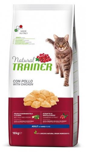 La carne fresca di pollo e tacchino consente di offrire un alimento altamente appetibile e dall’ottimale profilo proteico, ideale per un vero carnivoro. La moderna formulazione rende ora possibile assecondare l’istinto ancestrale del gatto a cambiare gusto alternando le diverse referenze “Adult” in tutta libertà e sicurezza, senza effettuare un passaggio graduale (Trainer® Safe Transition). Gli estratti secchi di Propoli, Menta piperita e di mela (AppleZin™) aiutano a mantenere una corretta igiene orale. L’estratto di Mirtillo rosso ed il contenuto apporto di Fosforo e Magnesio aiutano a preservare nel tempo la funzionalità delle vie urinarie. Per il benessere della cute e la bellezza del manto la ricetta è arricchita con zinco, biotina e alga schizochytrium mentre il lievito di birra ed i prebiotici favoriscono l’equilibrio intestinale e l’efficienza digestiva. Carne fresca di pollo e tacchino (pollo 13,5%), riso, glutine di mais, mais, carne disidratata di pollo e tacchino, strutto, farina di tonno disidratato, carne disidratata di manzo, proteine idrolizzate di pollo, polpe di barbabietola, semi di lino, sostanze minerali, fibra di pisello, lievito di birra 0,6%, FOS (frutto-oligosaccaridi) 0,2%, estratto secco di cicoria 0,1%, alga di mare (Schizochytrium spp.) 0,1%, estratto secco di menta piperita 0,03%, estratto secco di mirtillo rosso 0,02%, propoli 0,01%, AppleZin™ estratto secco di mela 0,002