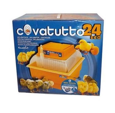INCUBATRICE COVATUTTO 24 ECO L’incubatrice COVATUTTO 24 ECO ha tutte le caratteristiche di una grande incubatrice. È costruita con materiali di ottima qualità e l’apparecchiatura elettronica, tecnologicamente avanzata, ne permette il riscaldamento e la ventilazione. Progettata per essere silenziosa, a basso consumo energetico e naturalmente per garantire la massima affidabilità sia in fatto di prestazioni che in sicurezza. Dotata di vaschetta esterna con coperchio salvaimpurità per garantire un’umidità ottimale. Dimensioni= cm 21,2x37x34