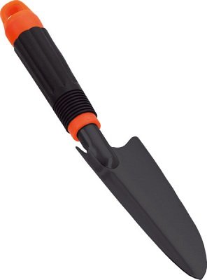 PALETTA STRETTA STOCKER Paletta per piccoli lavori di scavo in giardino, con base stretta. - Struttura in acciaio verniciato lucido con smalto nero - Manico di plastica dura arancione e nera Lunghezza: 34 cm Peso: 174 g