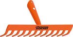Rastrello a pettine a denti piatti leggermente ricurvi per lavori di raccolta sassi e detriti, erieggiamento e livellamento terreno. Struttura in acciaio verniciato da utilizzare con manico venduto separatamente. A 12 denti Lunghezza 30 cm.