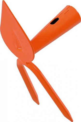 Zappetta da giardino con doppia funzionalità: la lama a forma di cuore per zappare, il bidente per scavare. - Struttura in acciaio verniciato lucido con smalto arancione altamente resistente - Da utilizzare con manico venduto separatamente Lunghezza: 22 cm