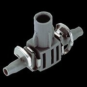 Il raccordo a T per microirrigatori è utile per montare i microirrigatori al tubo di derivazione da 4,6mm (3/16") ciò in combinazione con un tutore o con i fermatubo.