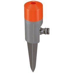 Il conveniente irrigatore Fox Classic GARDENA innaffia particolarmente bene piccole superfici. La gittata ha un diametro massimo di 11 m. Riducendo la pressione dellacqua è possibile ridurre di conseguenza anche il diametro. È ideale per superfici di massimo 100 m², per es. aiuole e giardini antistanti casa. Grazie al getto nebulizzato è possibile innaffiare anche le piante più delicate. Lirrigatore a girandola è montato saldamente su un picchetto. Tramite il picchetto è possibile posizionare in maniera facile e sicura lirrigatore Fox Classic GARDENA nel prato o nel terreno. Anche le piccole superfici hanno bisogno di essere innaffiate.