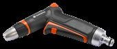 Lancia in metallo per pulire e innaffiare comodamente. Protezione antigelo. La robusta lancia per pulizia Comfort GARDENA è adatta sia per la pulizia e che per lirrigazione. Il getto dacqua può essere regolato a piacere, da pieno a nebulizzato. La testina e il raccordo, realizzati in metallo, sono molto resistenti. Limpugnatura ergonomica con inserti in morbido materiale plastico consente di lavorare con il massimo della comodità. La quantità d’acqua può essere regolata di continuo. Il comando a impulsi può essere bloccato sull’irrigazione continua in modo da innaffiare senza stancarsi le mani. La lancia per pulizia Premium dispone inoltre di una protezione antigelo integrata.