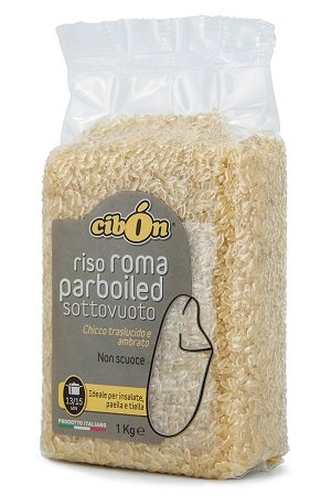 RISO ROMA PARBOILED SOTTOVUOTO Chicco traslucido e ambrato NON SCUOCE PRODOTTO ITALIANO INGREDIENTI RISO ROMA PARBOILED Ideale per INSALATE, PAELLA E TIELLA tempod i cottura: 13/15 minuti