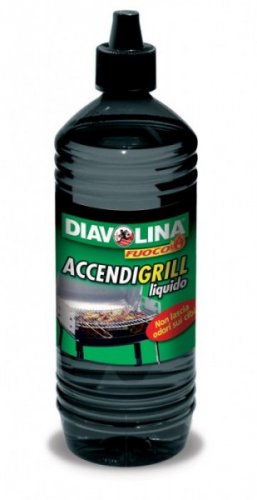Diavolina Accendigrill è il prodotto più efficace e facile da usare per l’accensione di grill e barbecue. Diavolina Accendigrill è specifico per l’accensione del barbecue e non lascia alcuna traccia sui cibi. Puoi usarlo con tranquillità, grazie anche al flacone da 1lt dotato di tappo di sicurezza contro i ritorni di fiamma.