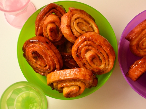 Cospargere la sfoglia con 4 cucchiai di zucchero e la scorza di un’arancia e di 1 limone grattugiata.